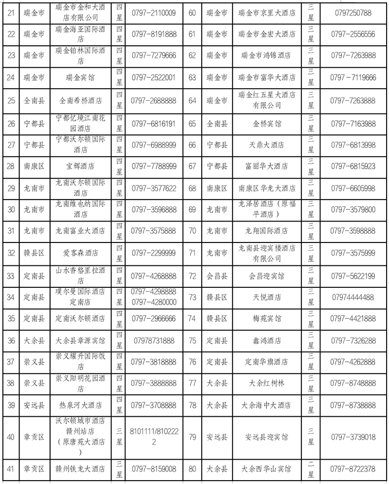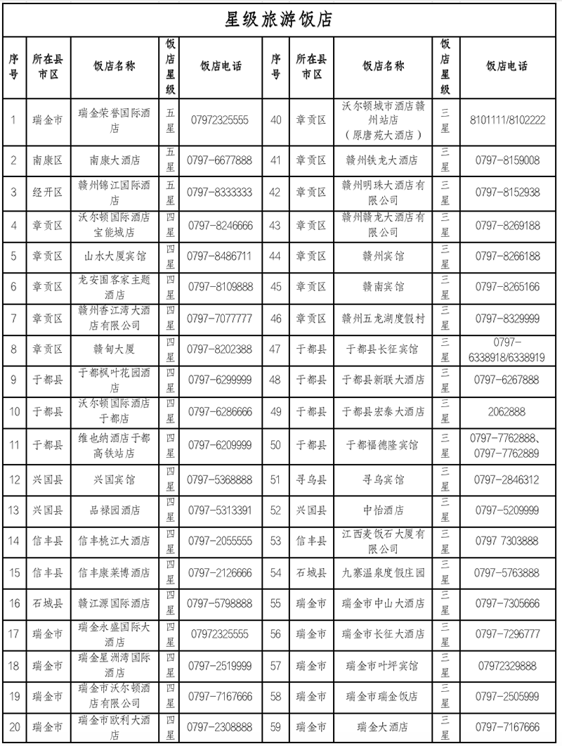 赣州星级旅游饭店和绿色饭店不完全名单